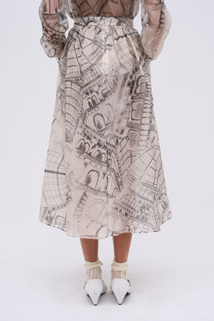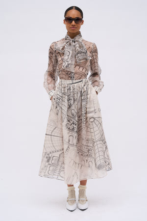Jupe longue taille haute en mikado de soie mélangée Image to render