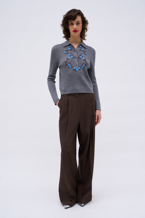 Pantalon à pinces en laine cady
