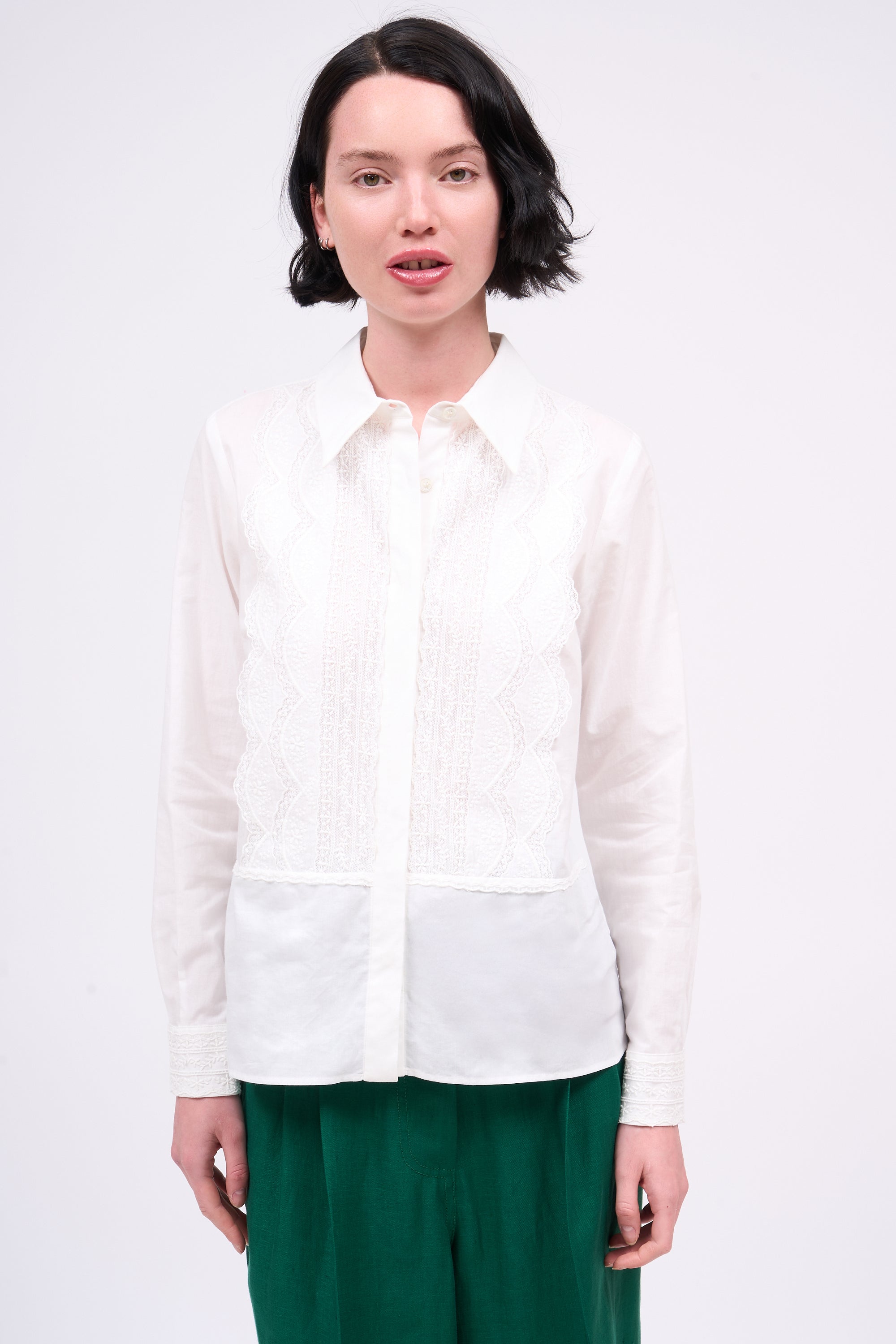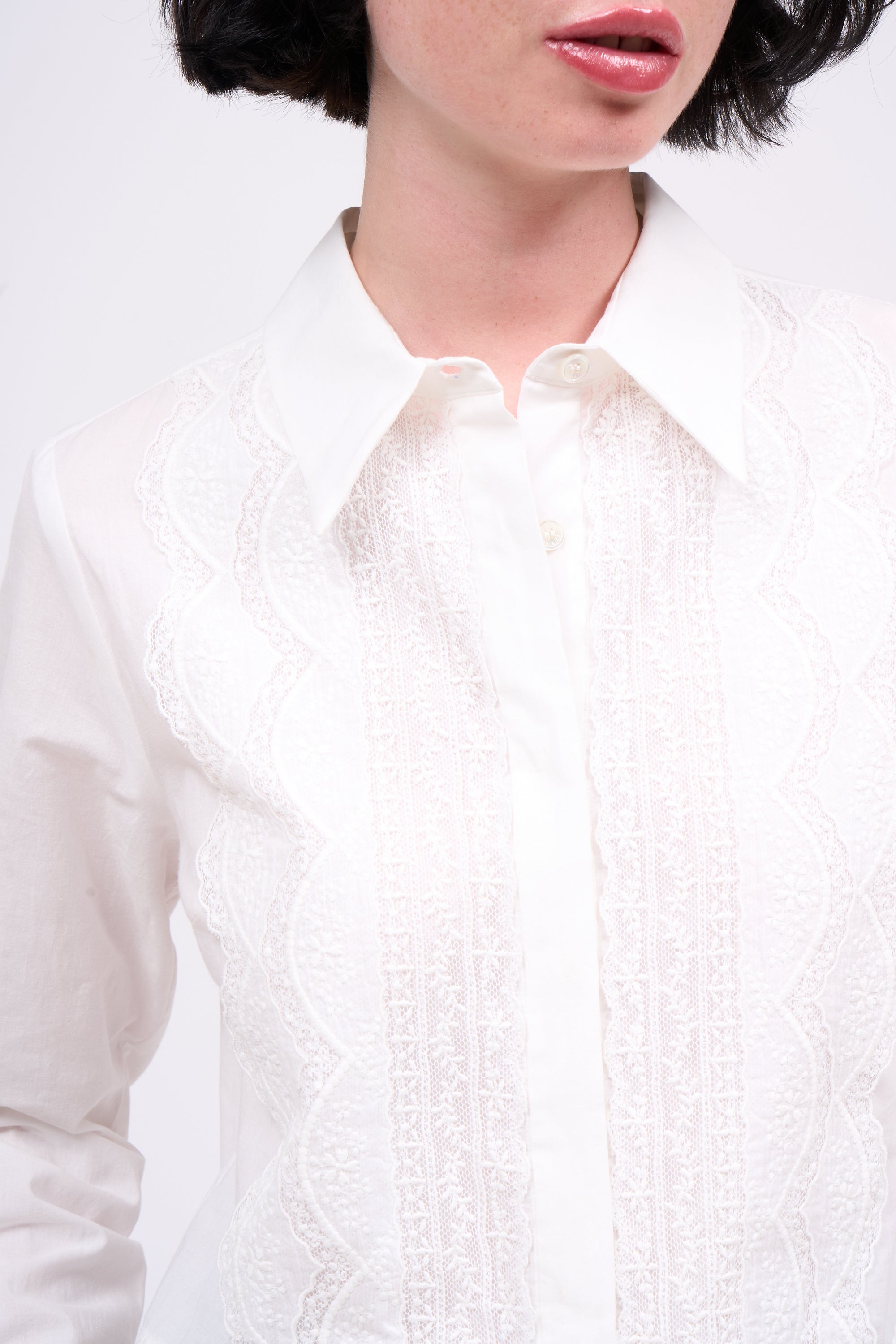 Shirt in cotton voile and Calais lace
