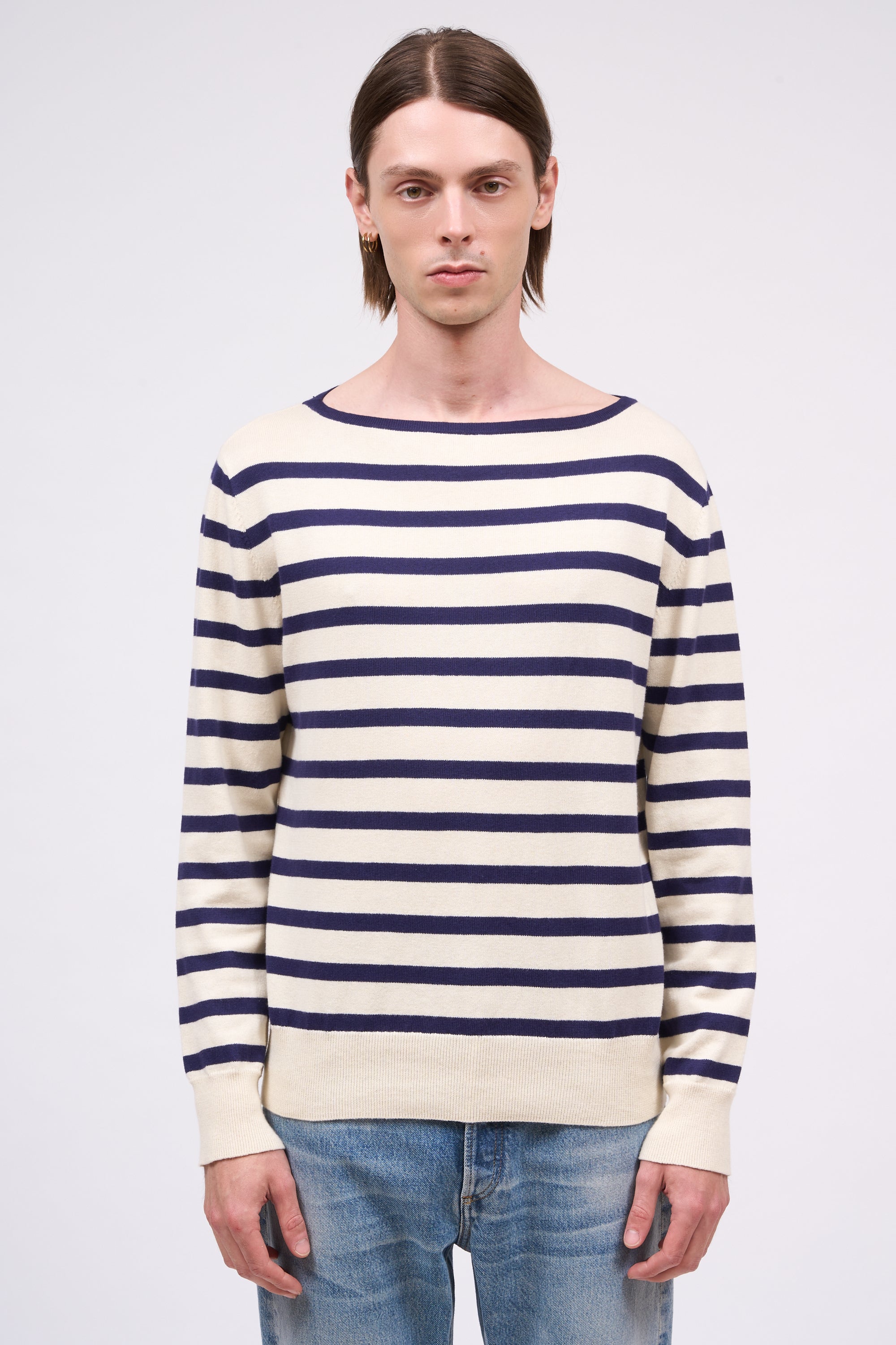 Pull léger marinière en coton et cachemire