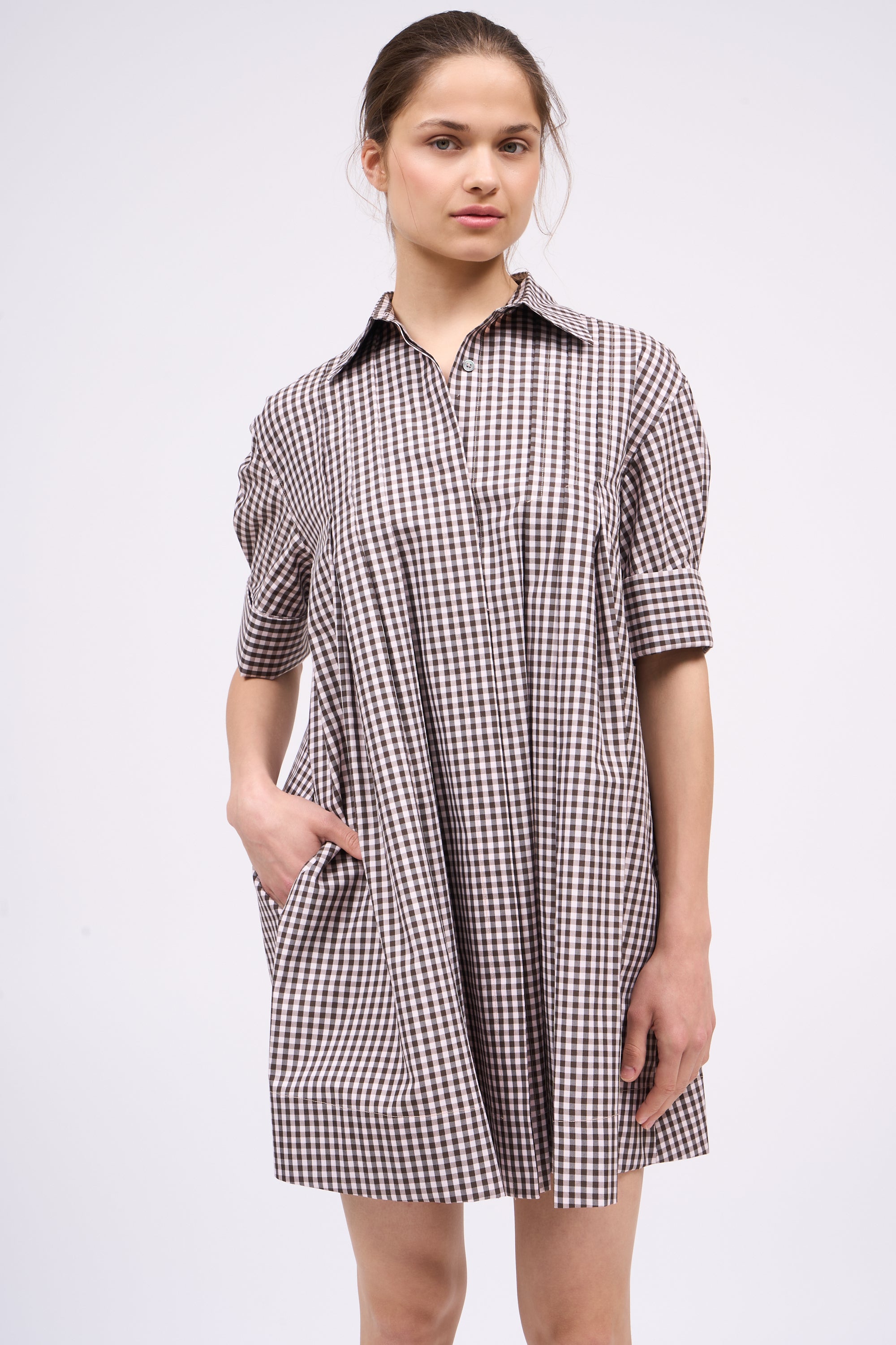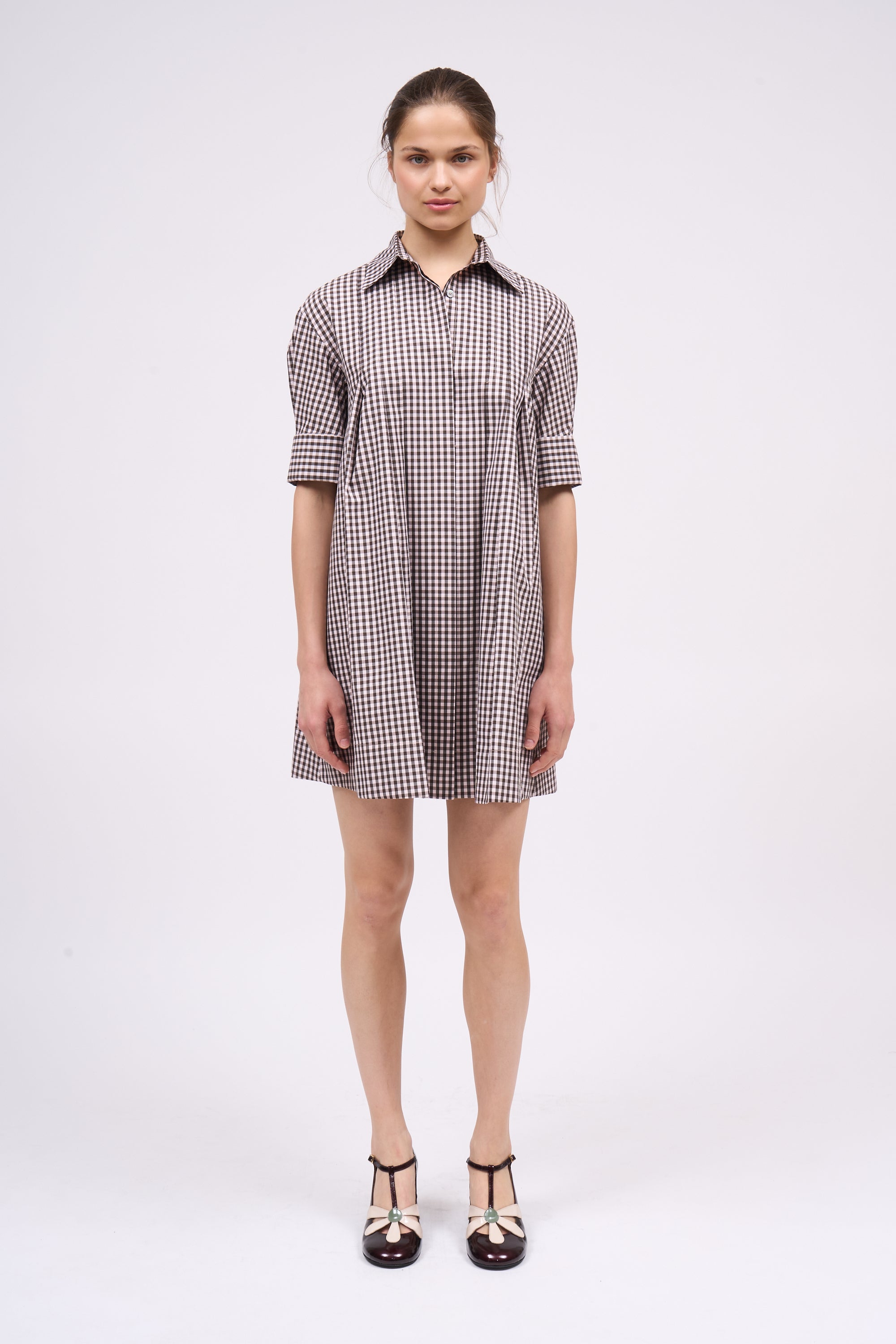 Robe-chemise en popeline de coton vichy