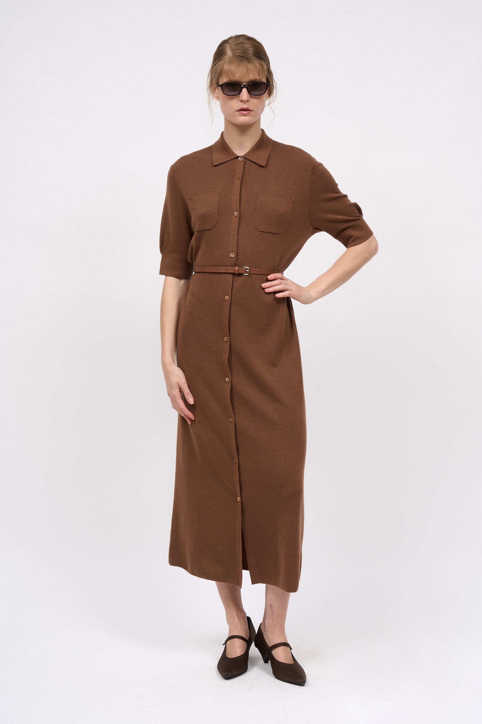 Robe-chemise longue en laine merino