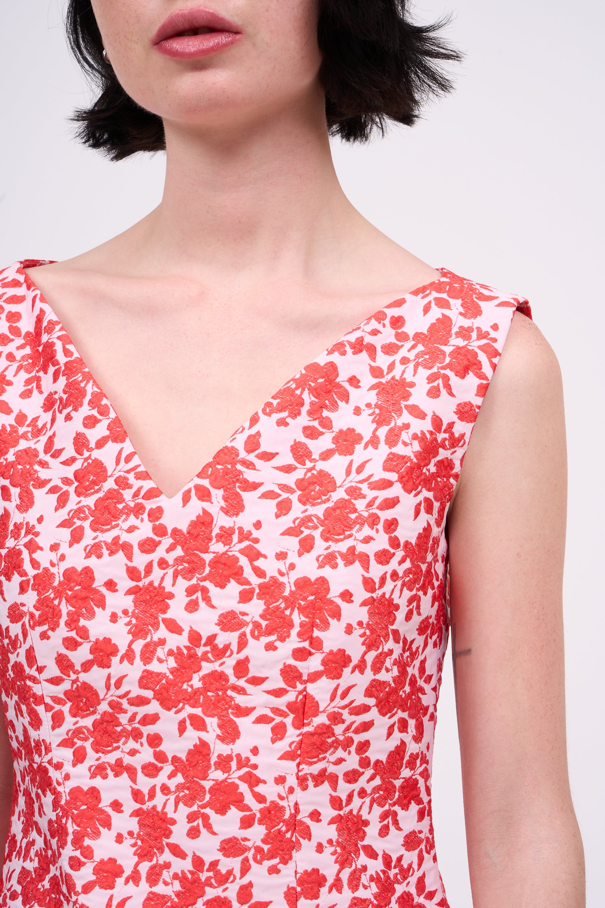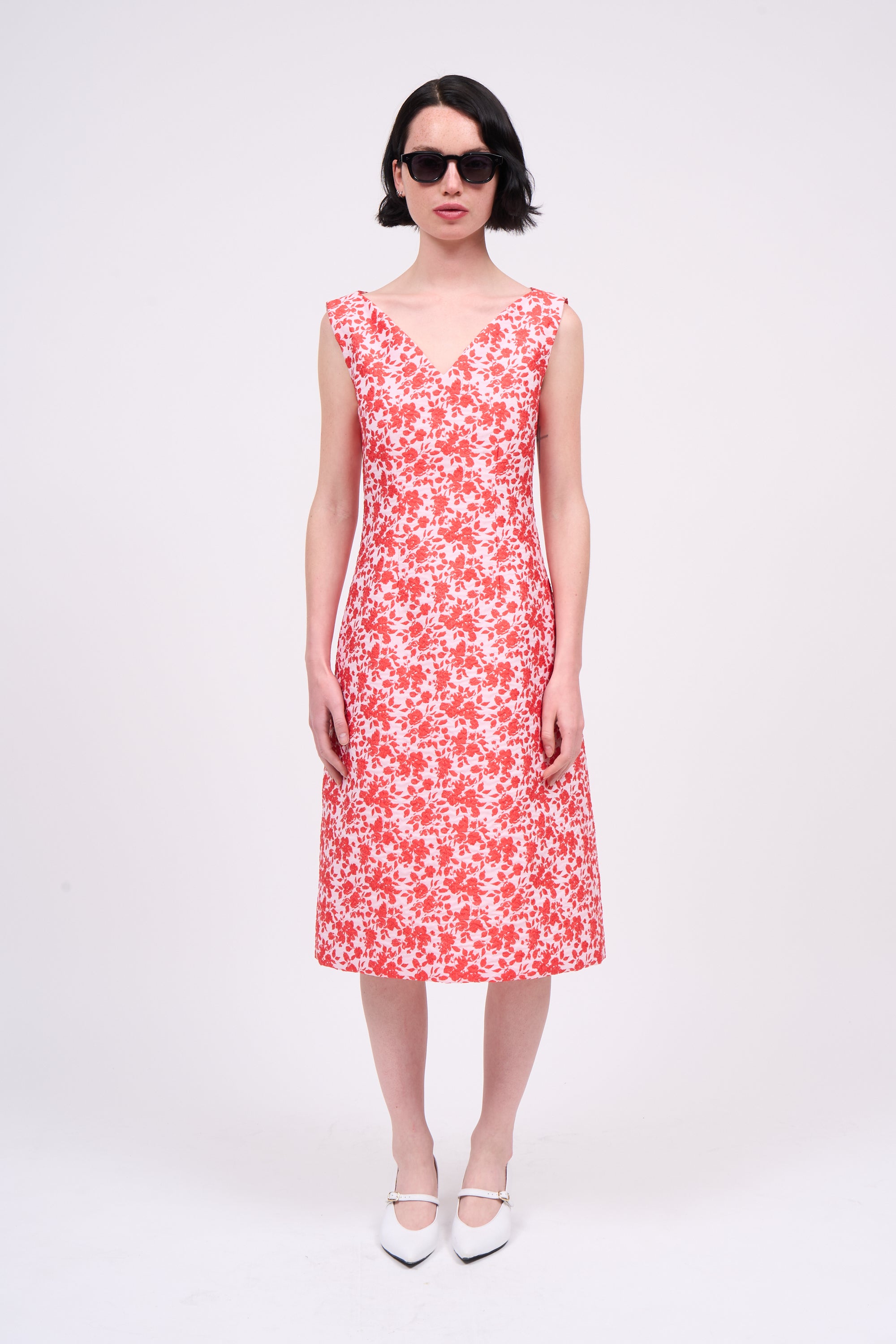 Midi-length fitted dress in 3D jacquard with a cherry blossom print