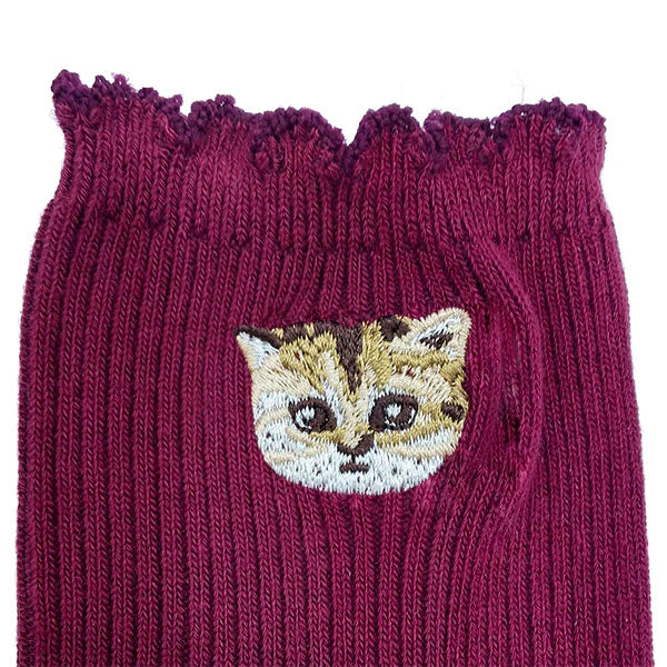 Chaussettes bordeaux motif tête Nounette sur l'ourlet