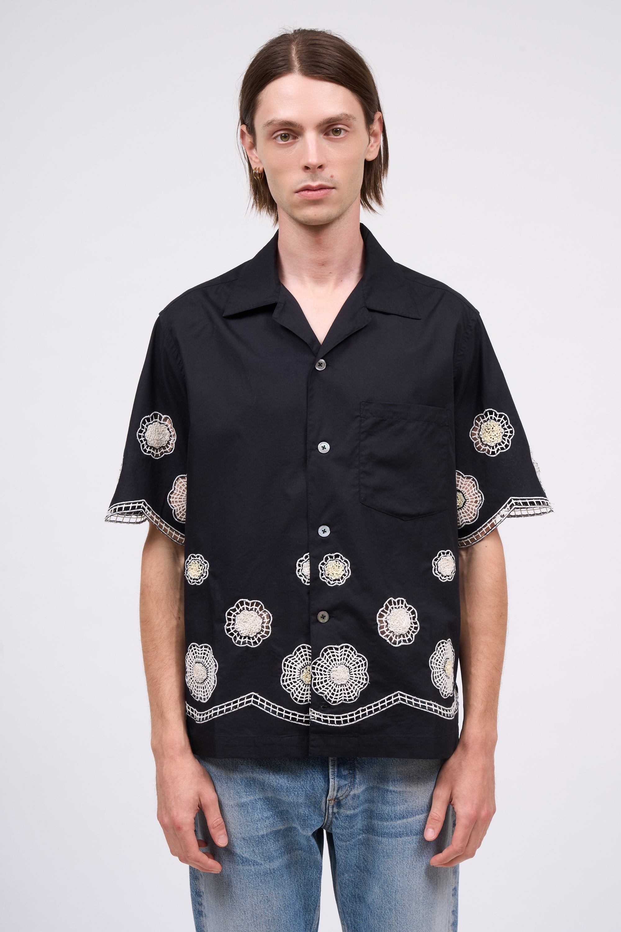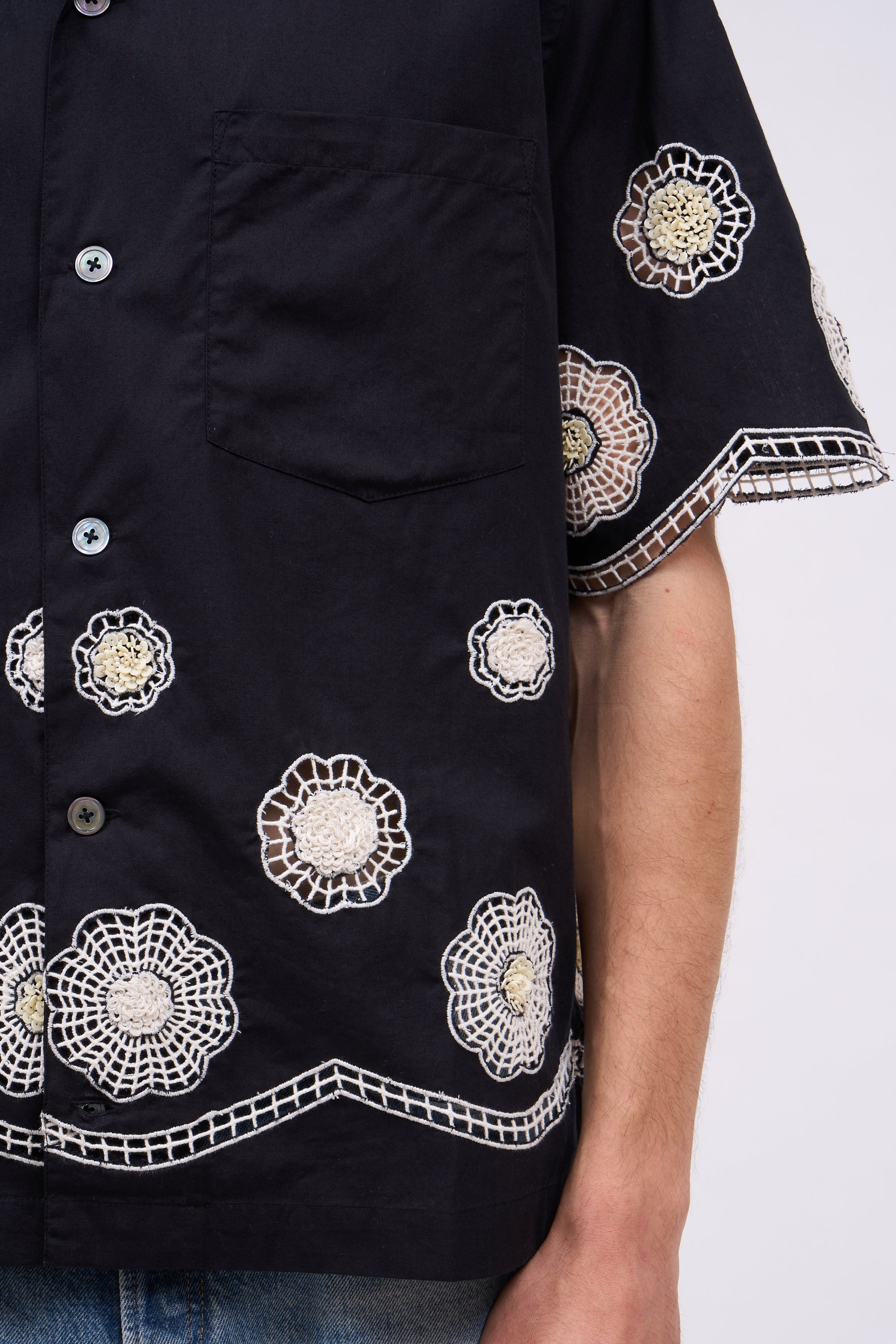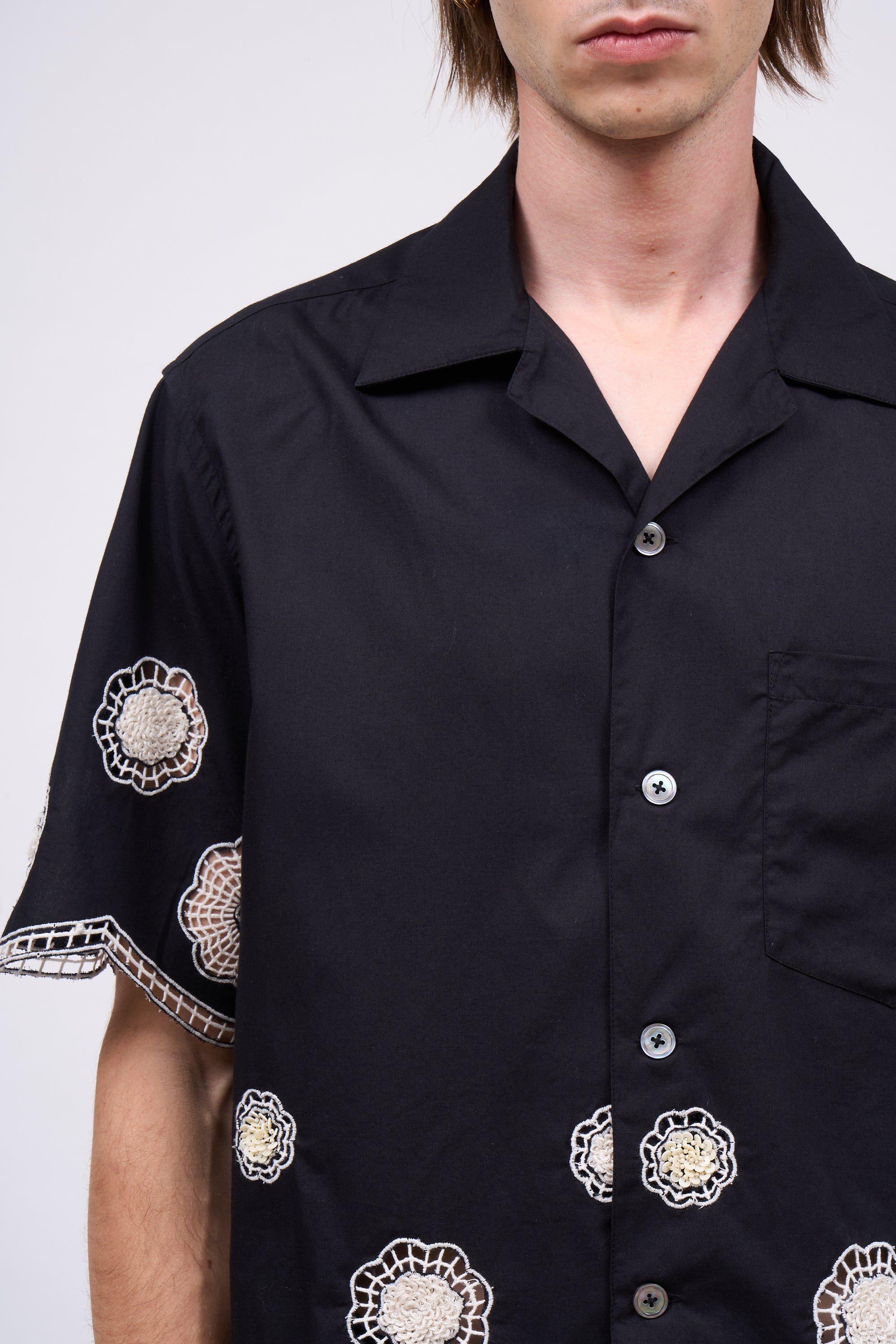 - Chemise à manches courtes en coton brodé à la main