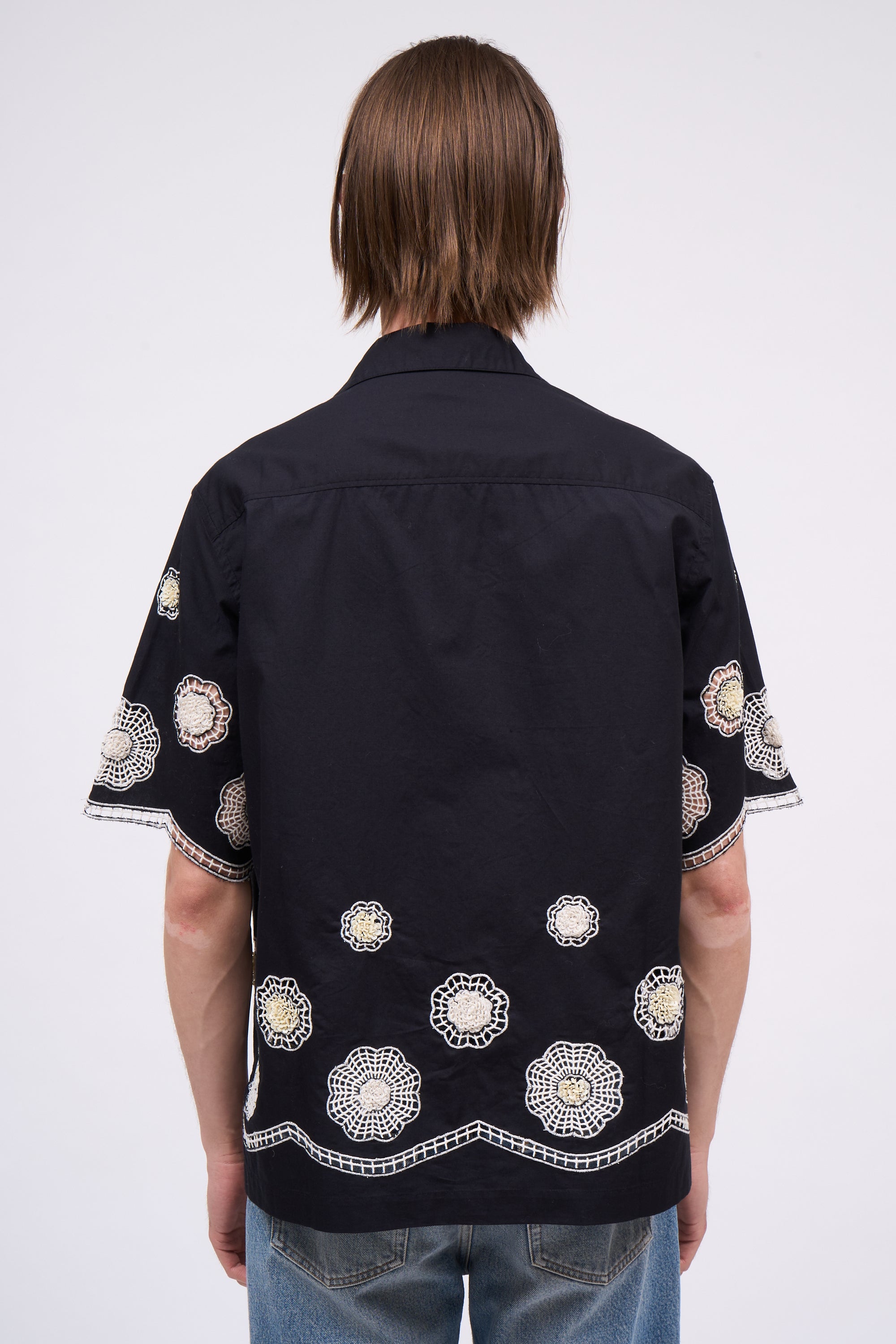 Chemise à manches courtes en coton brodé à la main PHOENIX
