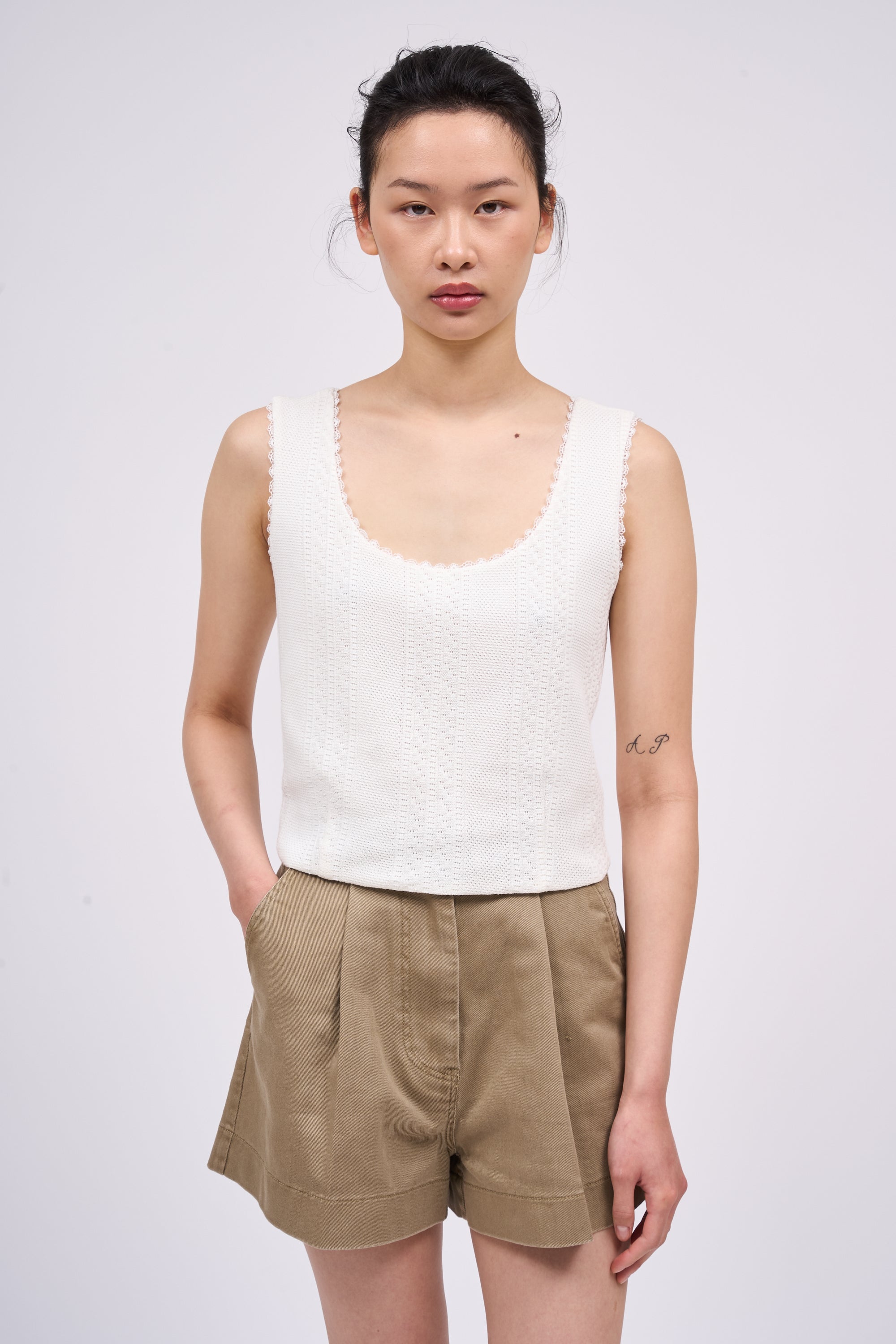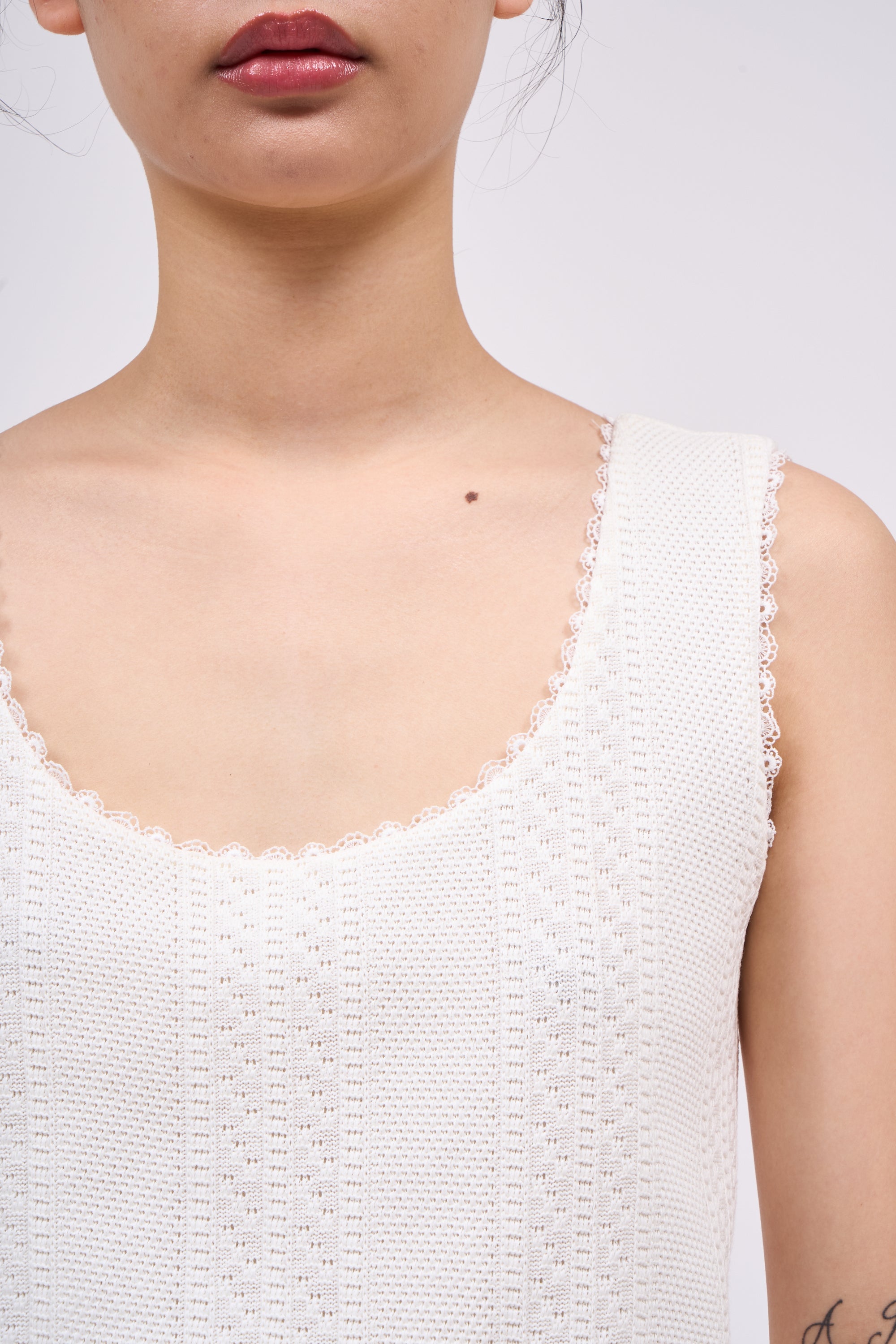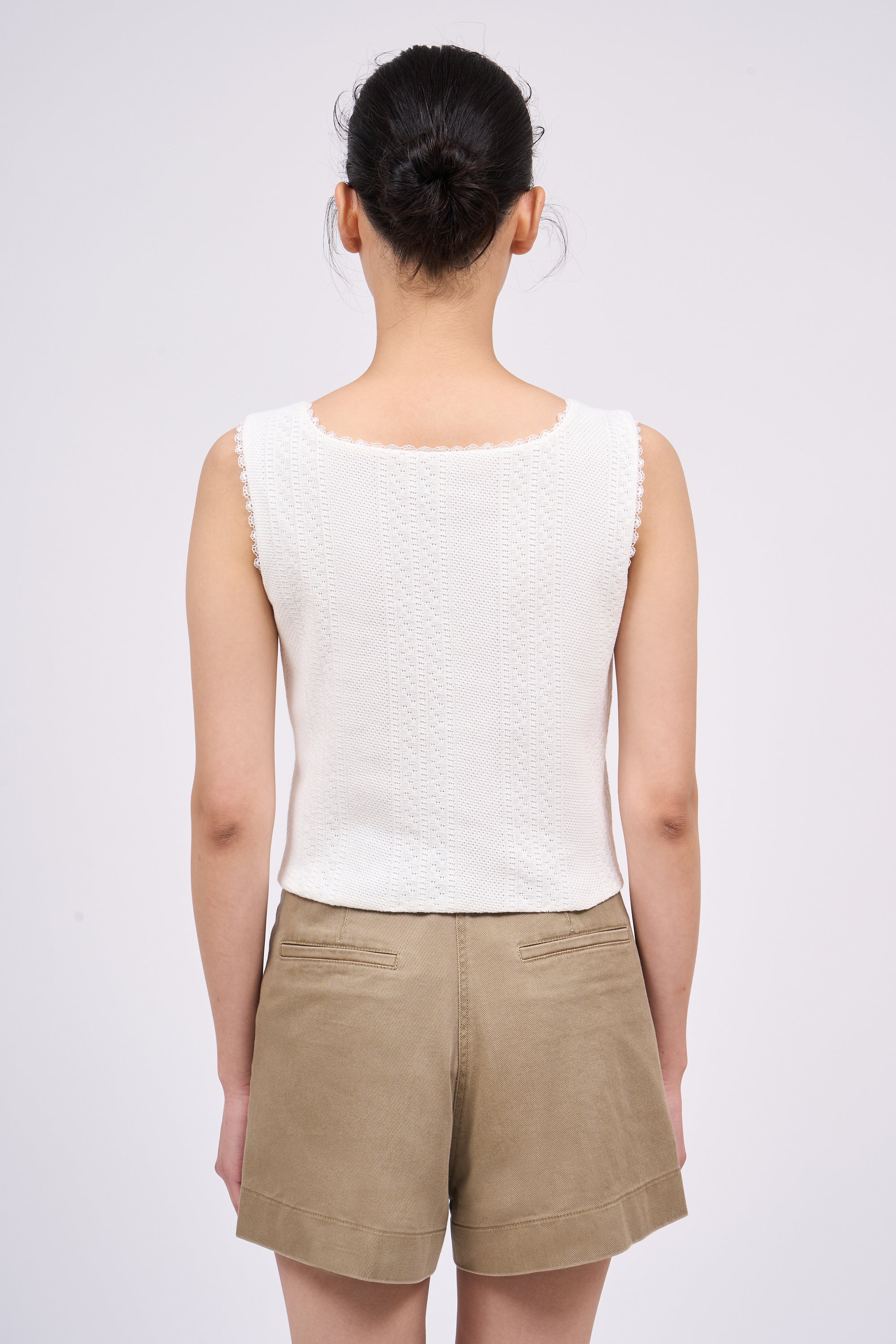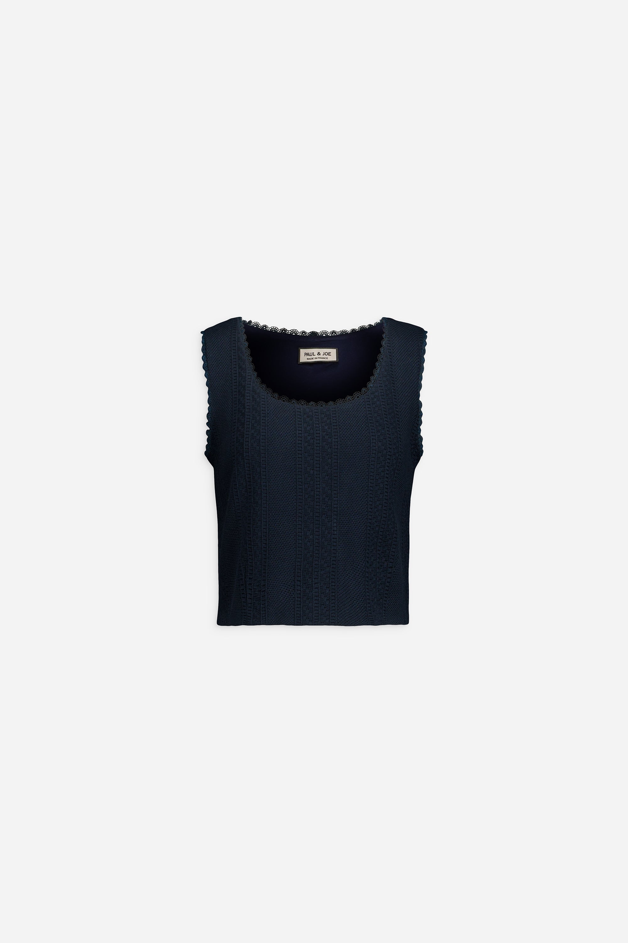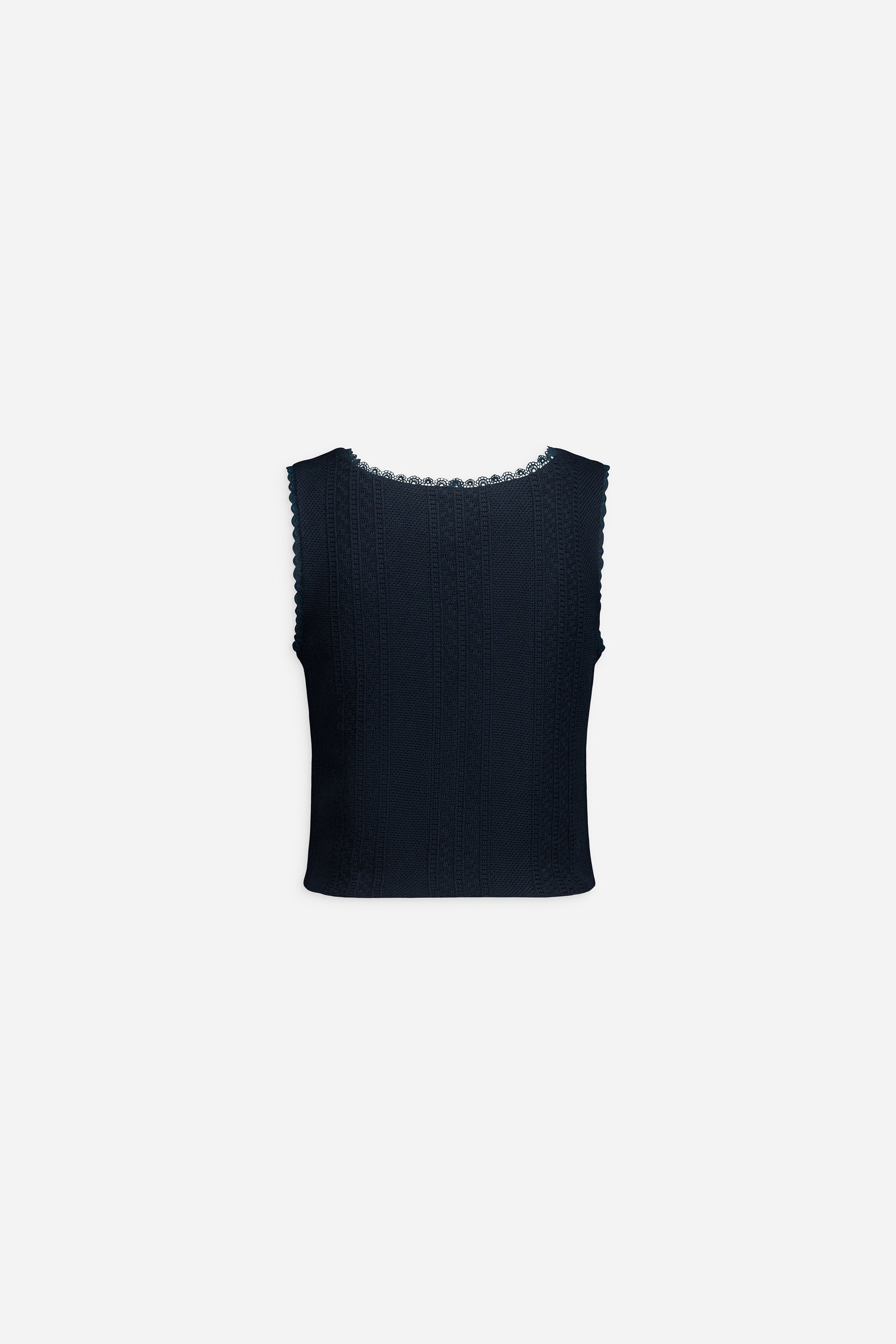 Débardeur court en maille de coton avec pointelle et dentelle