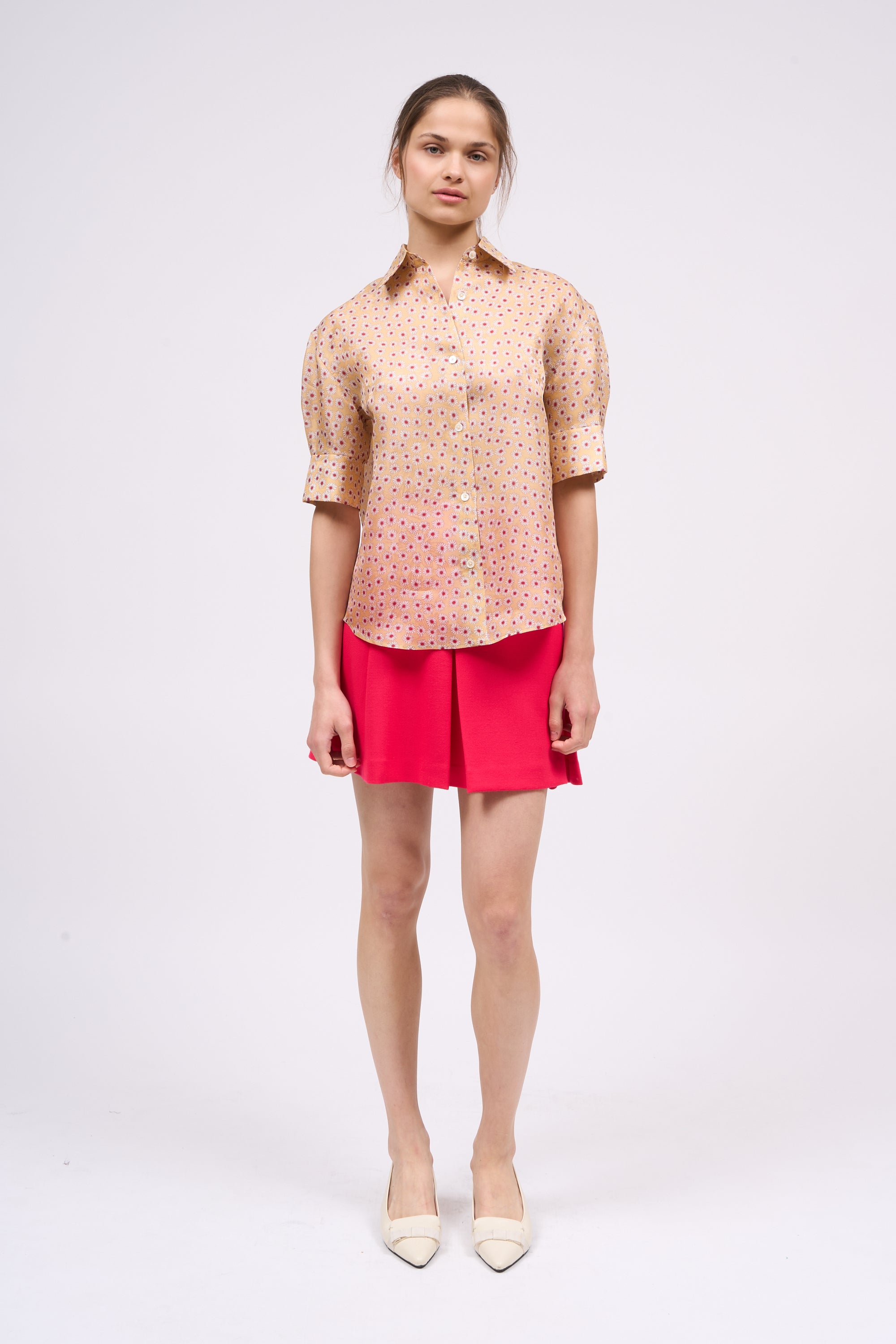 Jupe courte évasée en laine mélangée