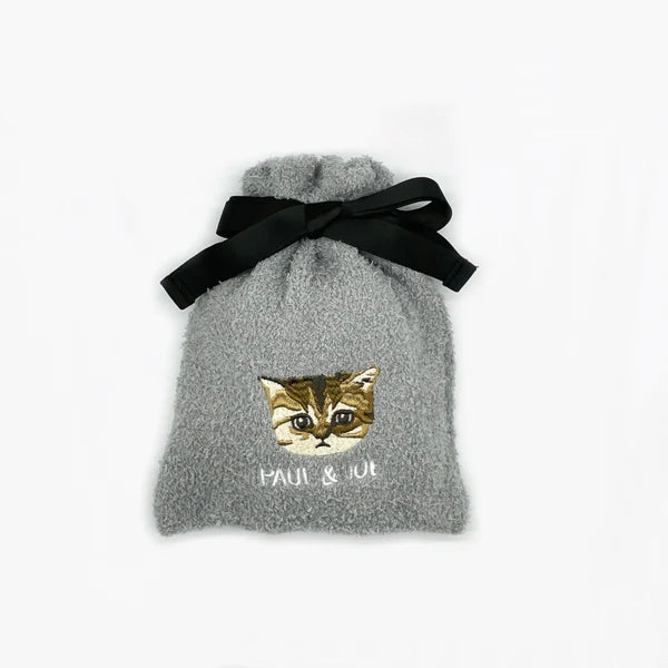 Chaussettes-chaussons brodées Nounette dans une pochette à cordon gris
