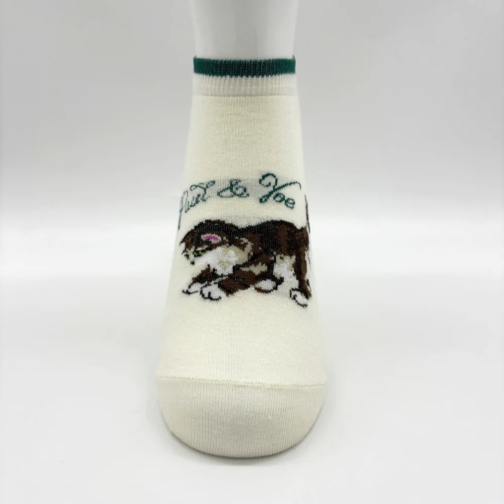 Chaussettes écrues à motif chaton sur le devant
