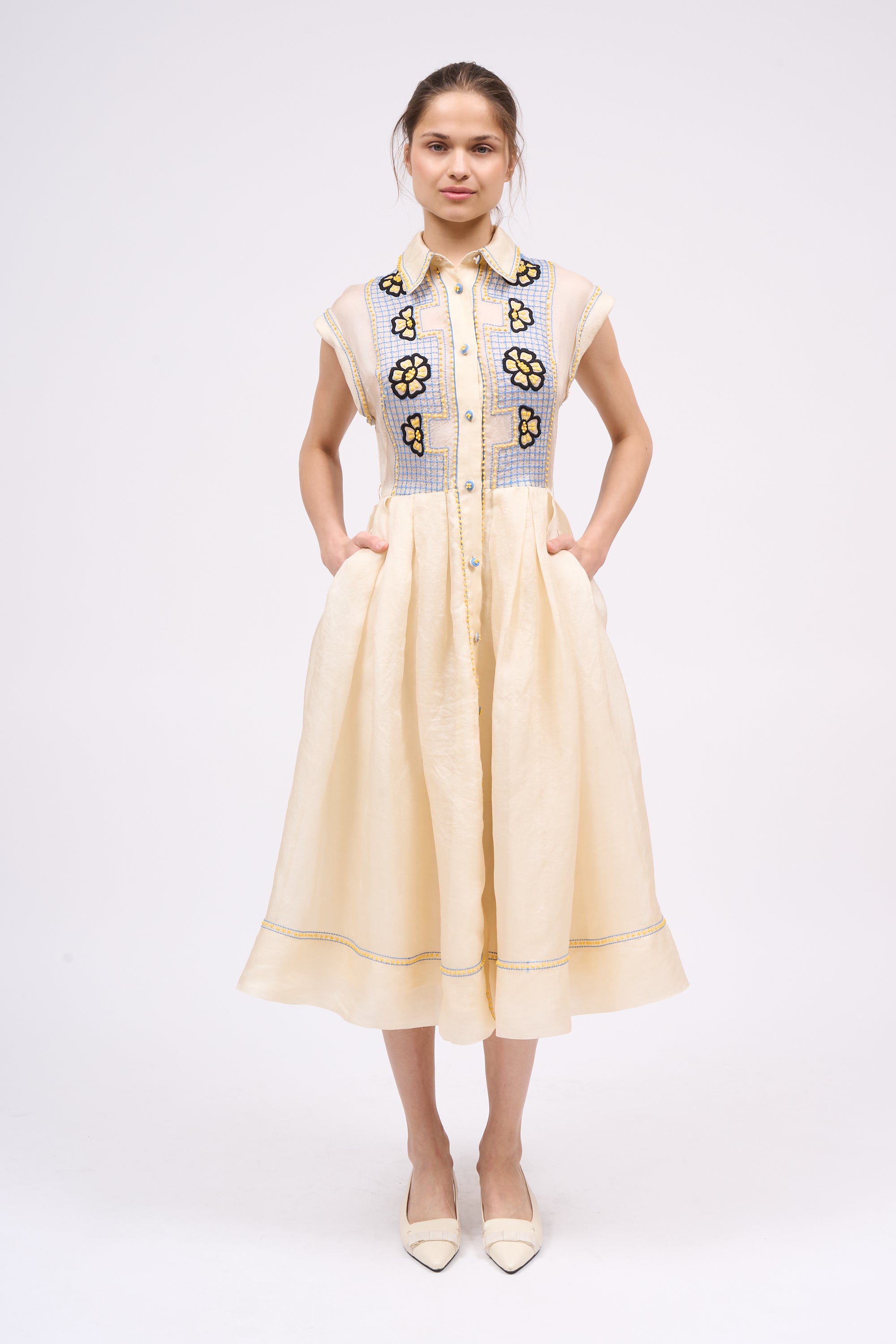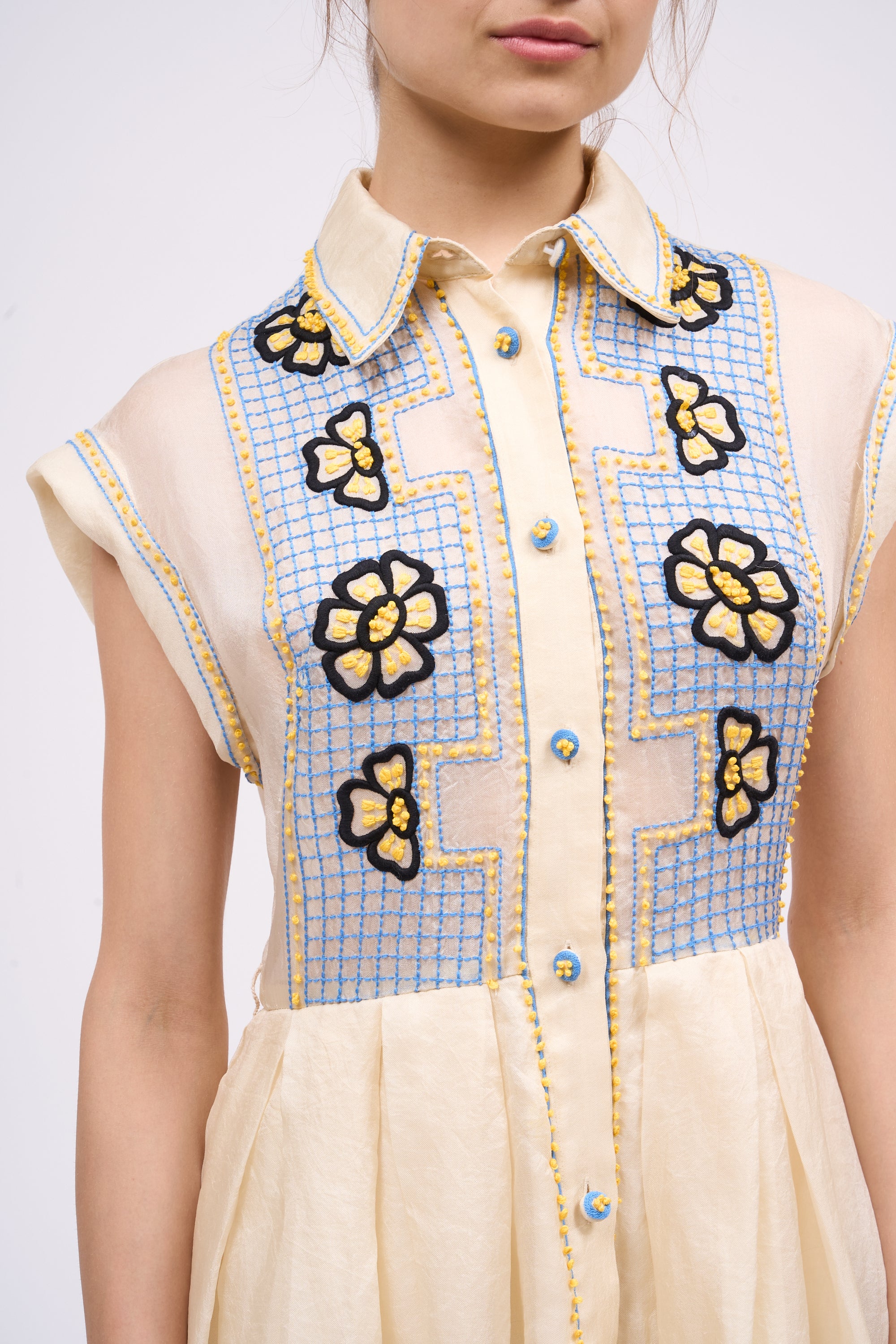 Robe-chemise brodée à la main sur organza de soie