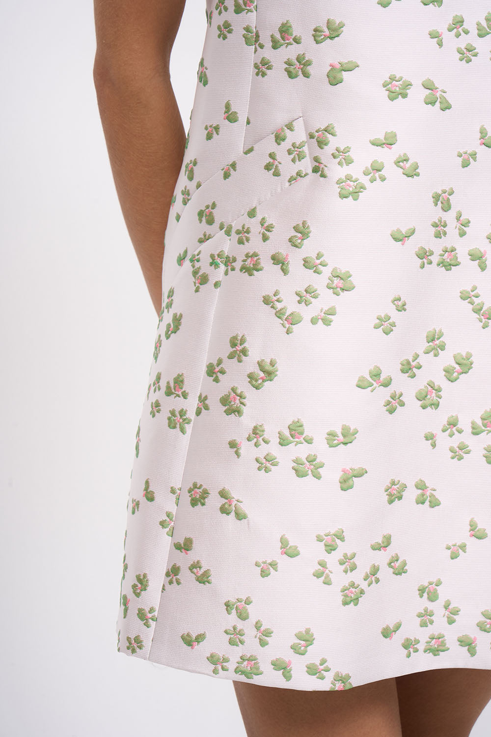 Robe trapèze courte en jacquard 3D fleuri