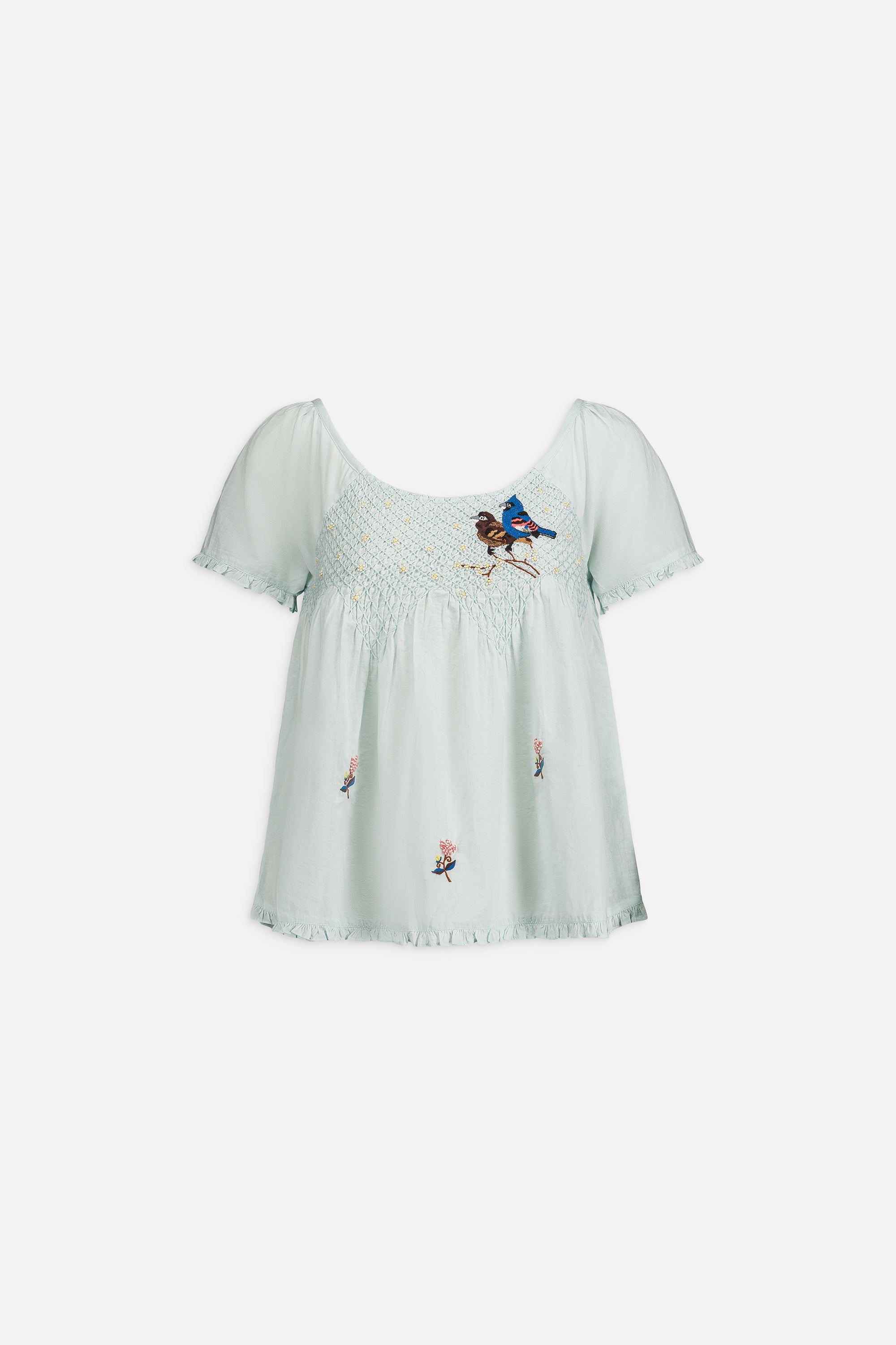 - Haut smocké à la main avec un broderie oiseaux brodée à la main