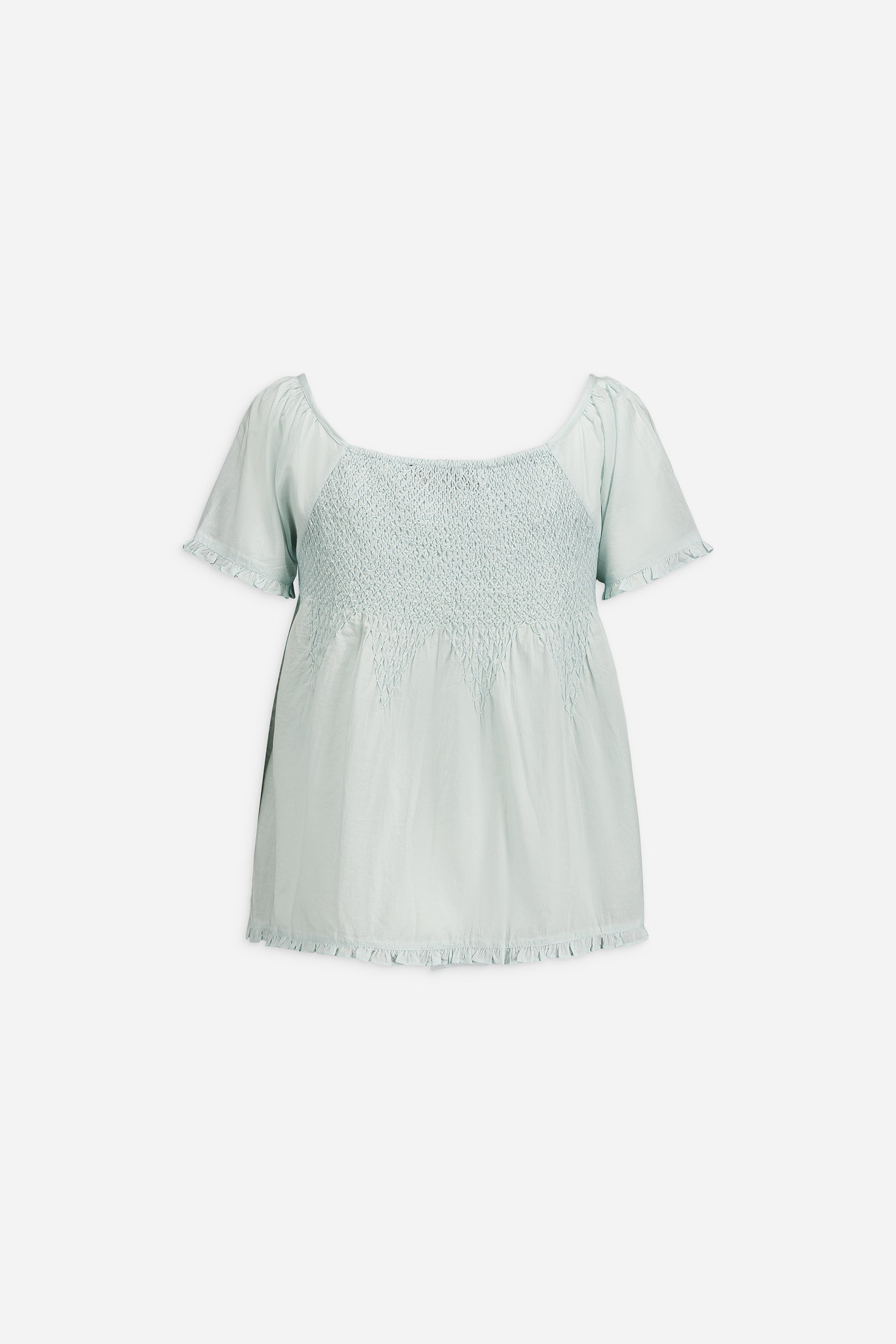 - Top smockée à la main en voile de coton brodé
