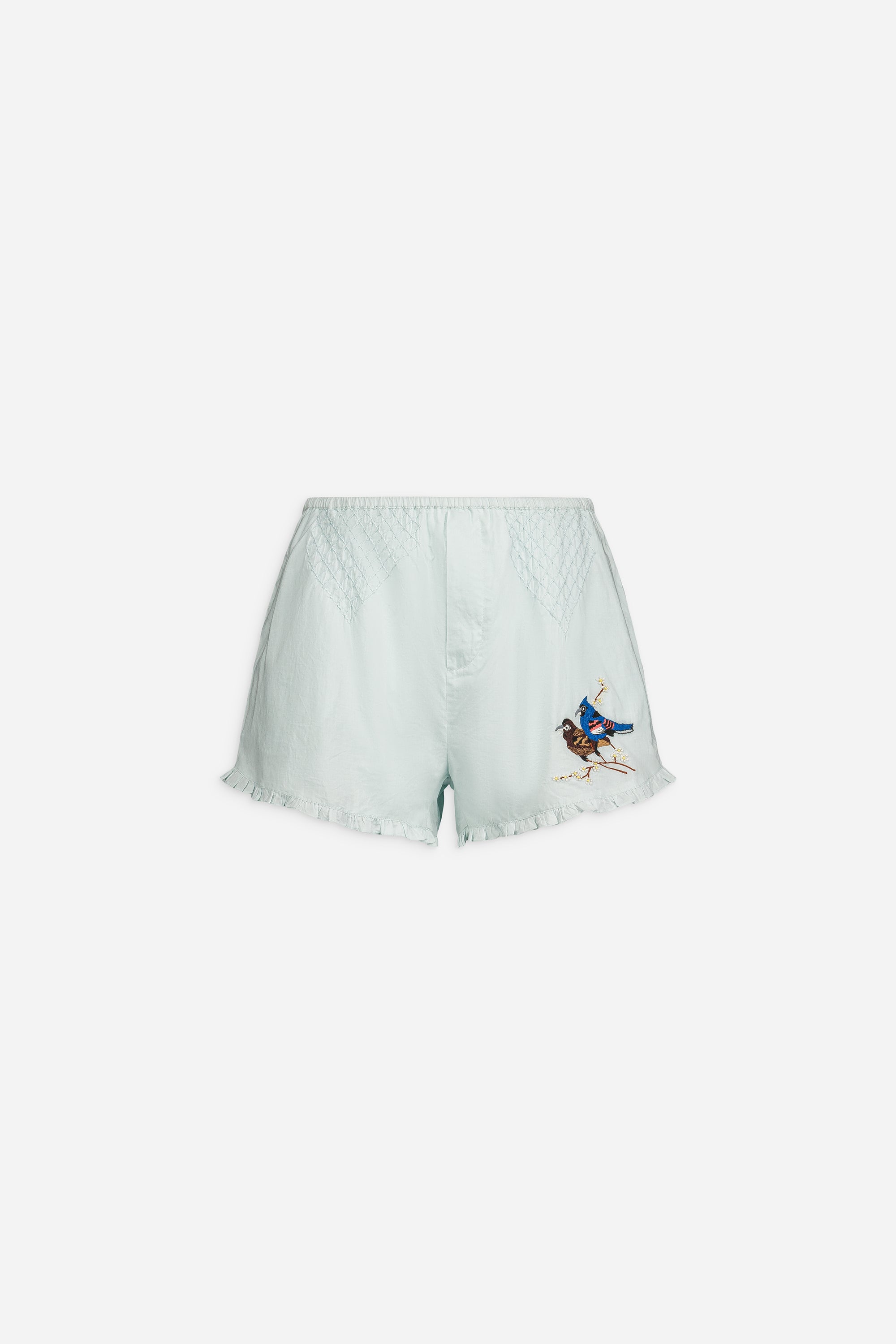 Short smockée à la main en voile de coton brodé PIAF