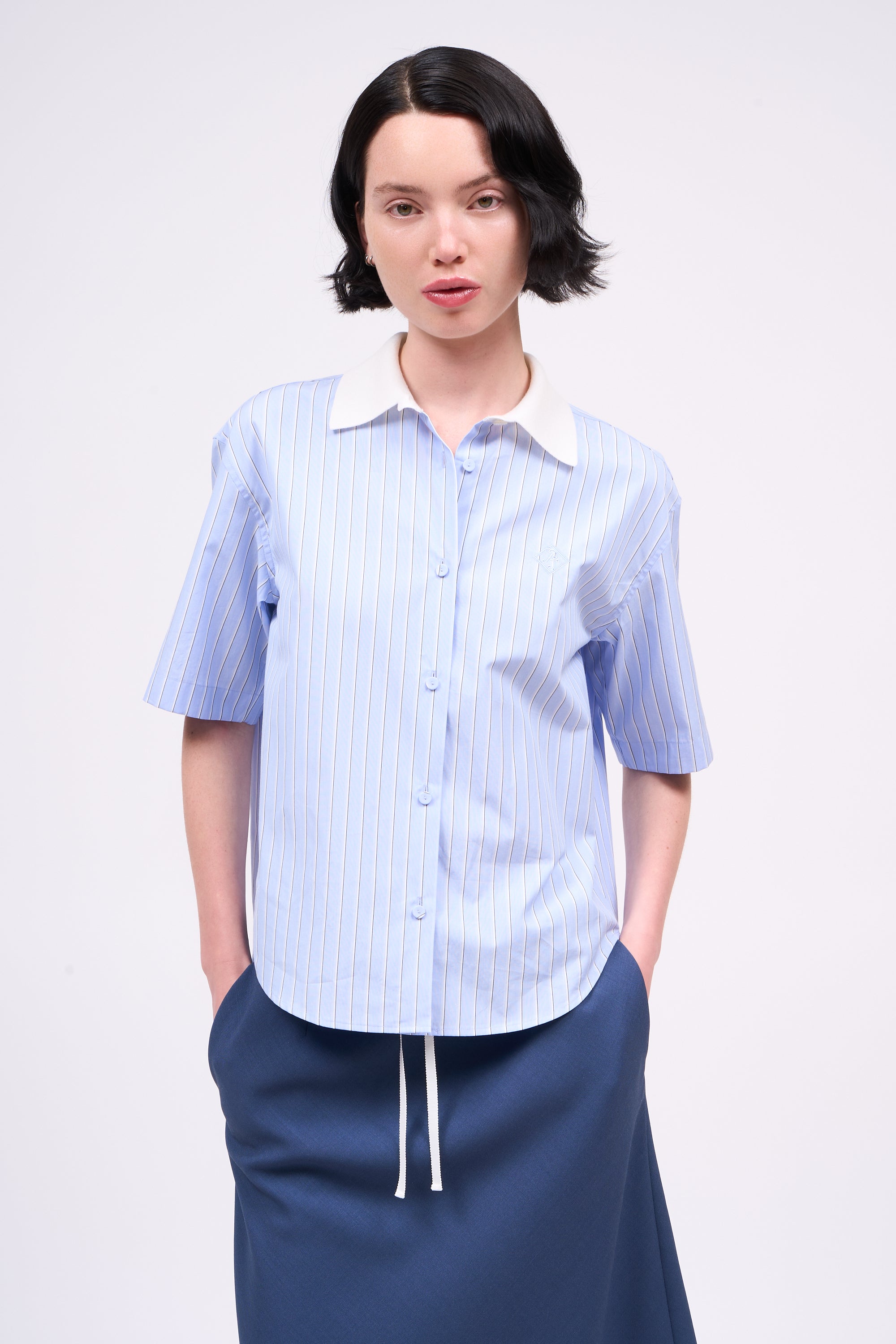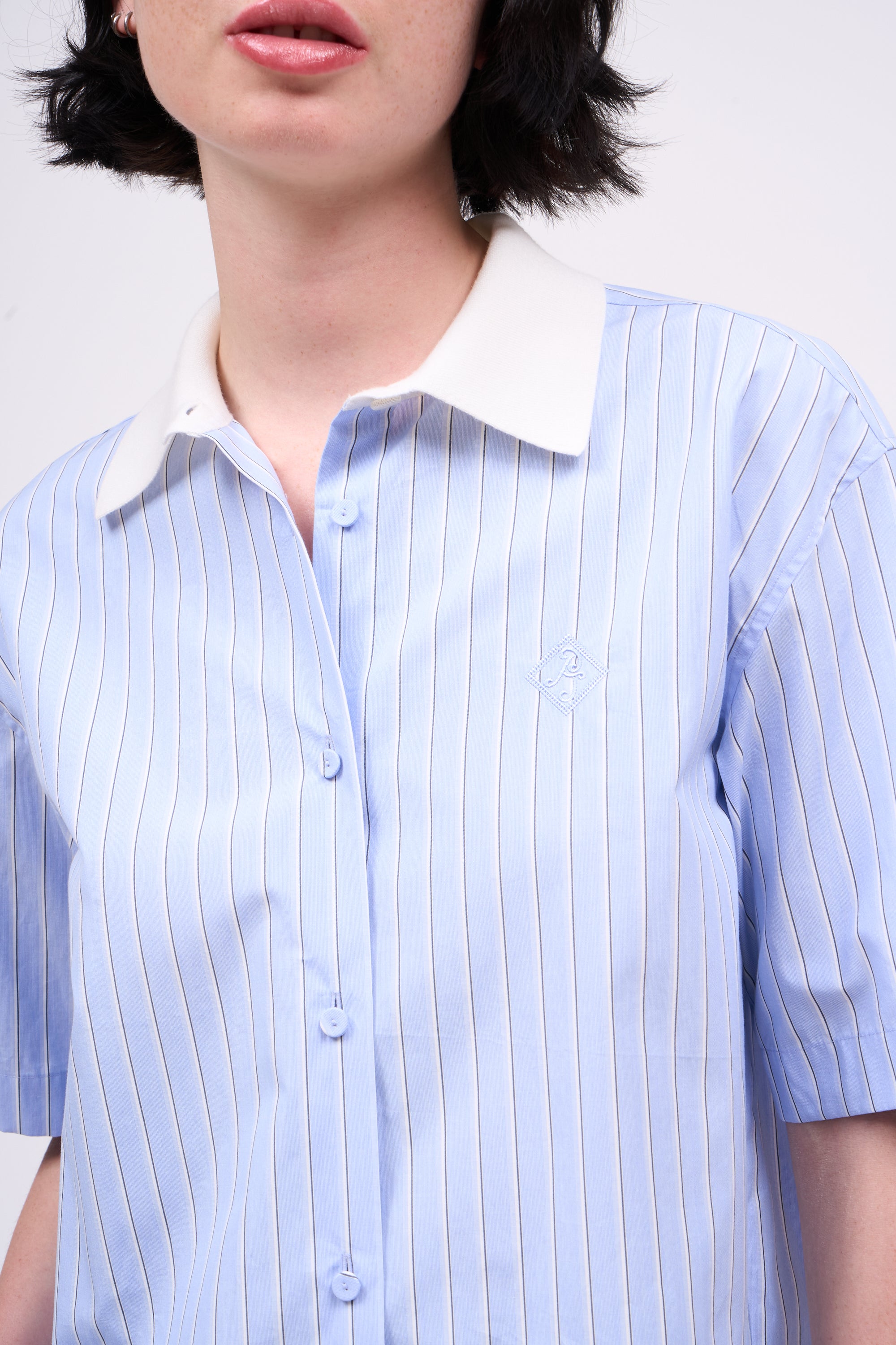 Chemise courte en popeline rayée