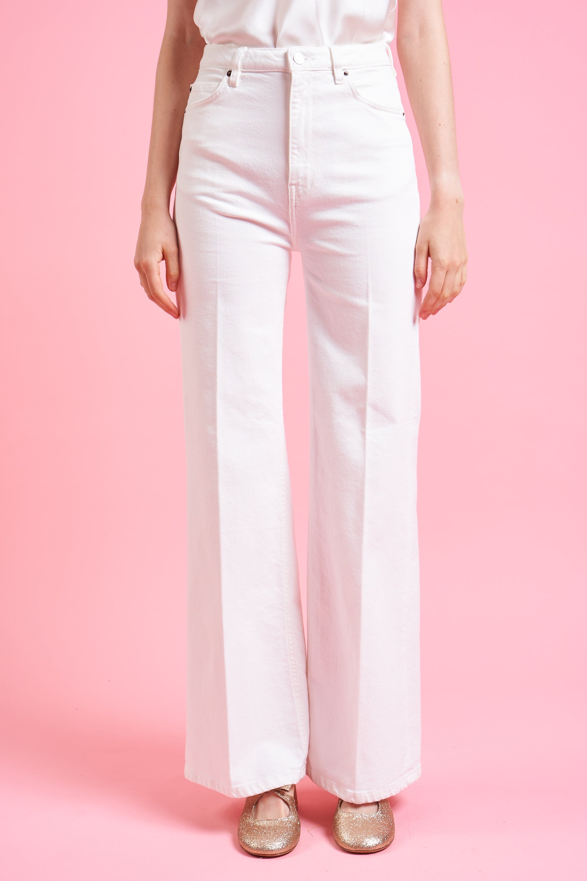 - Jean taille haute coupe droite en toile de coton