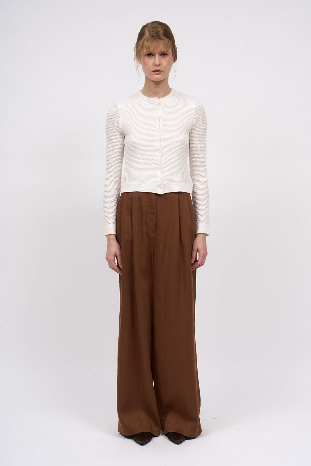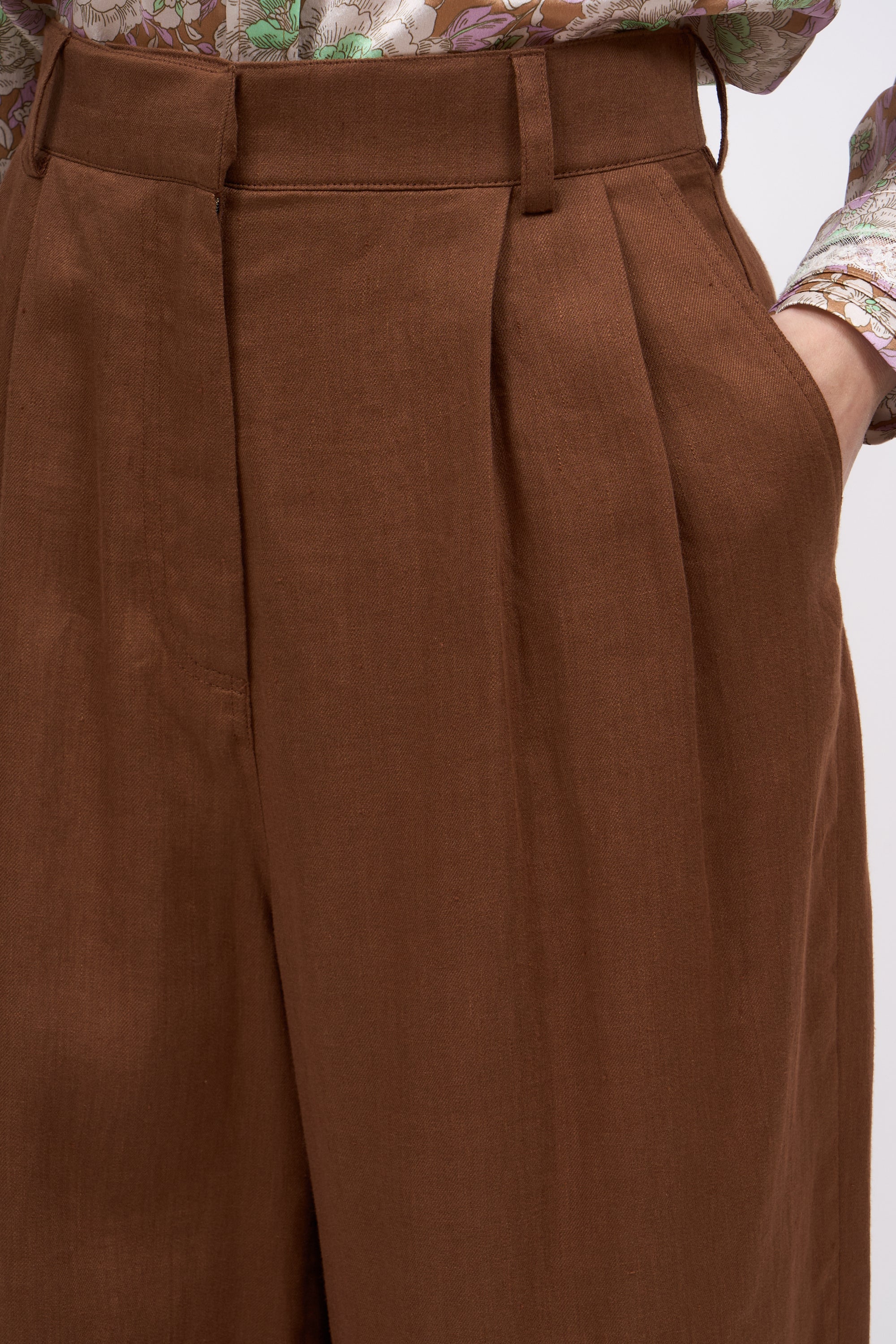 Pantalon taille haute en twill de lin
