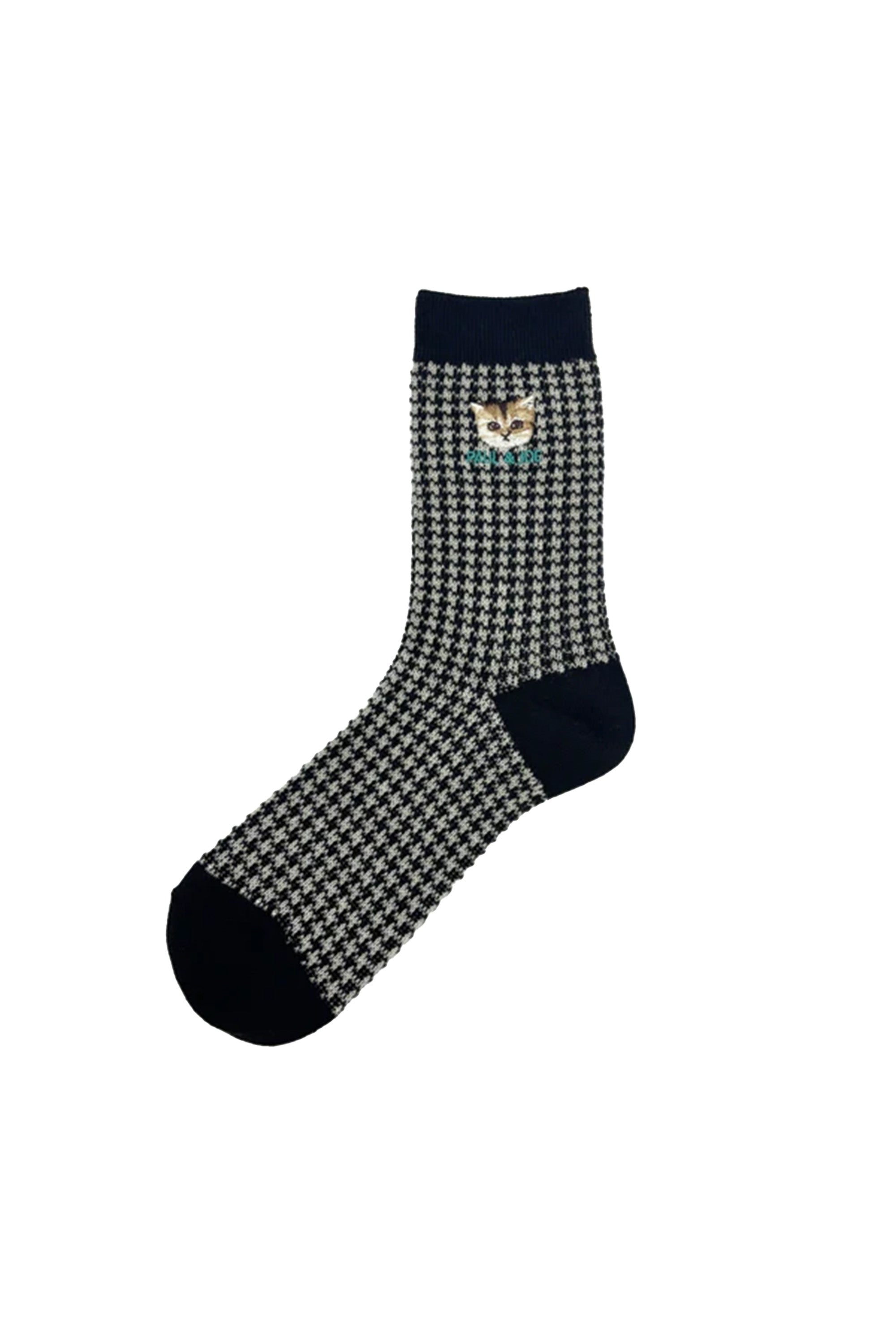 Chaussettes brodées Nounette à carreaux pied-de-poule noires