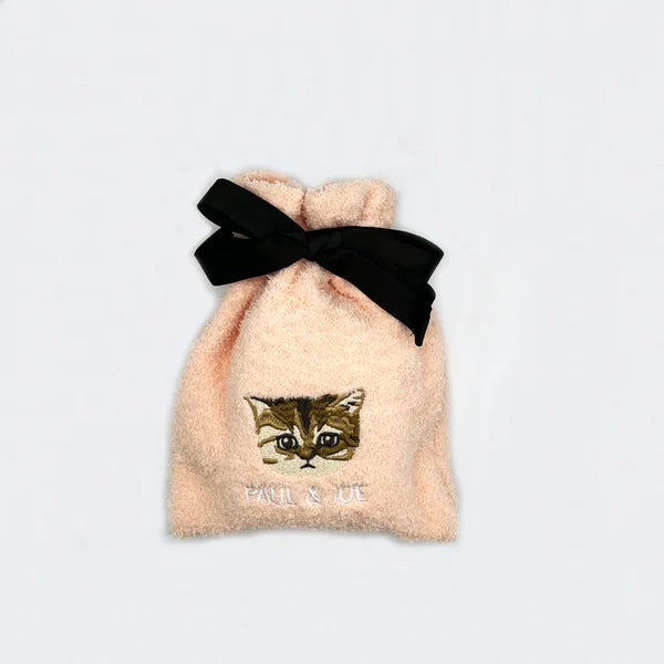 Chaussettes-chaussons brodées Nounette dans une pochette à cordon rose