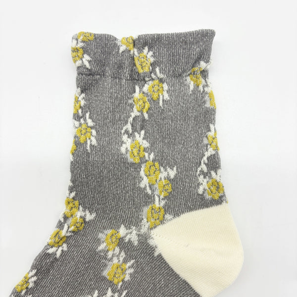 Chaussettes femme à fleurs jaune et gris