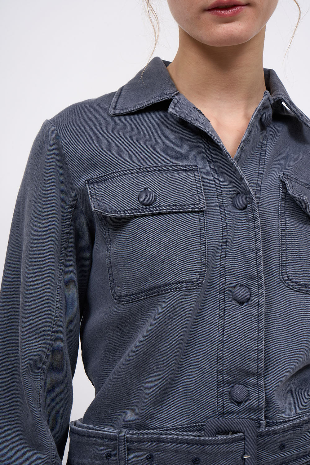 Veste courte cintrée en twill de coton délavage vintage